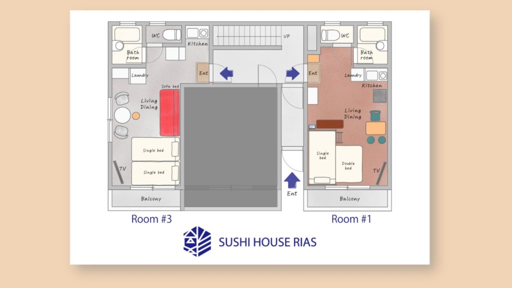高級旅館のような民泊|手描き間取り図