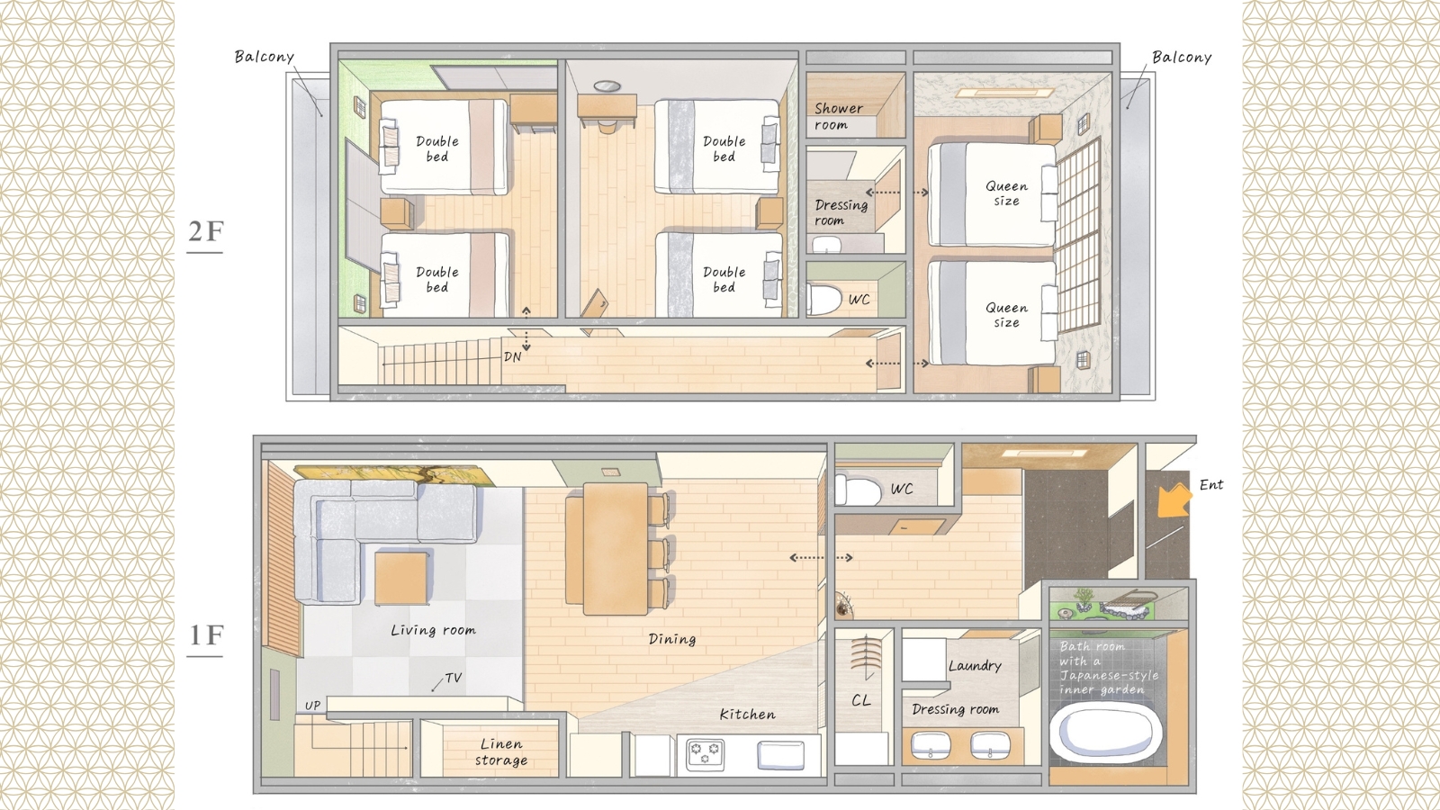 和の要素を取り入れたインテリア|民泊用立体間取り図
