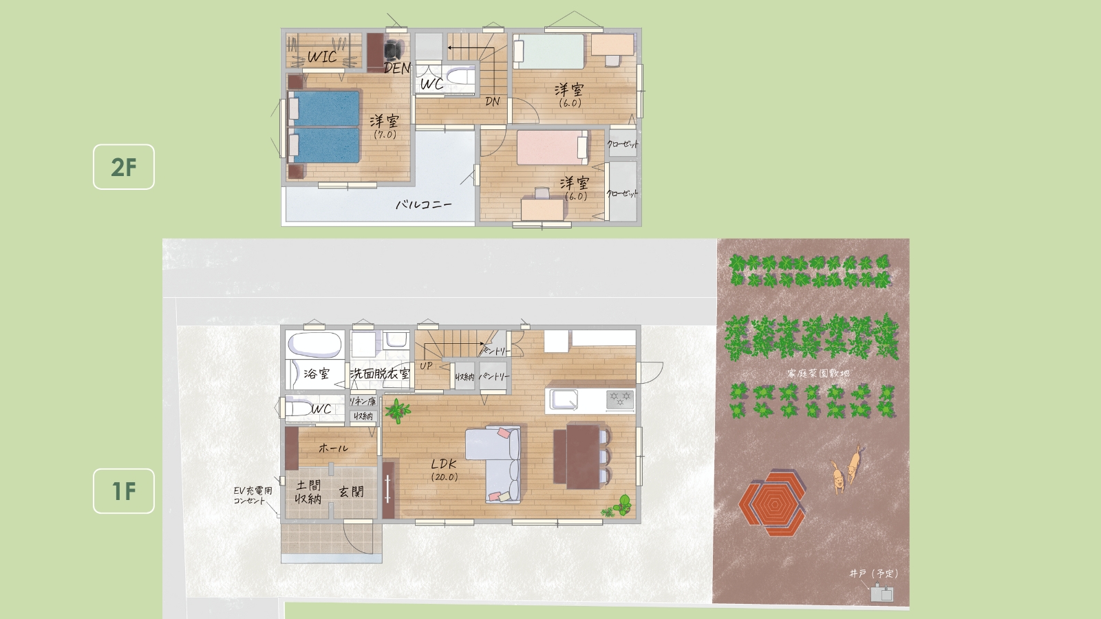 平面間取り図|民泊の家具付き図を魅力的にします 一級建築士による手描きイラスト図面で差別化を