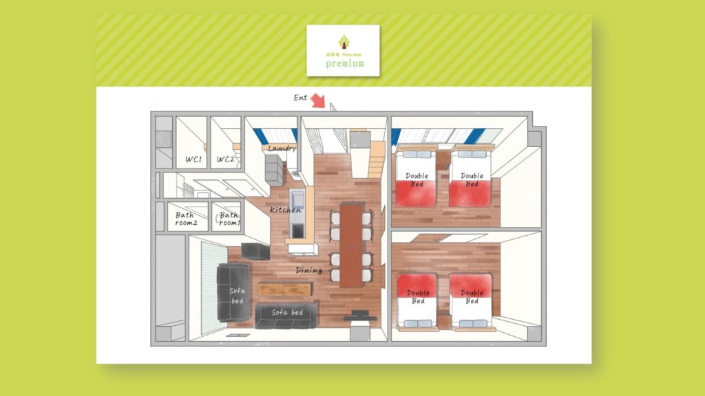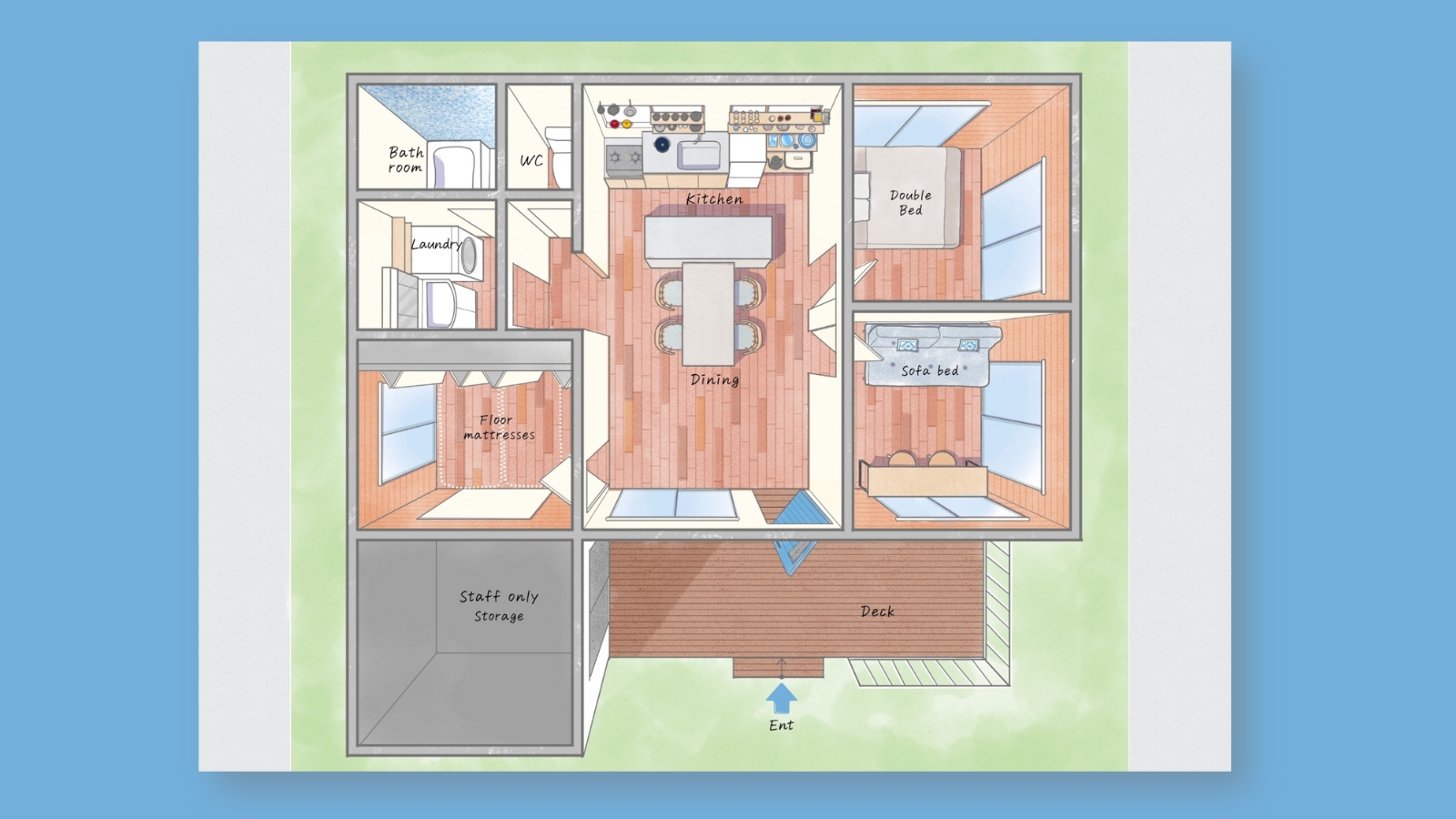 家具付き俯瞰図|民泊や販促に!間取りを手書きします 一級建築士による手描きイラストで差別化を